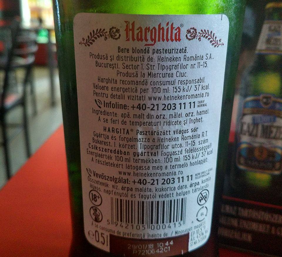 Valami ilyesmi járhatott a fejében a Heinekennek, amikor piacra dobta a megújított Hargitát. A csíkszeredai Mikó-várat ábrázoló címke le lett cserélve egy székelykapura, és az eleddig is nyomokban magyar szöveget tartalmazó feliratok teljes értékű magyar fordítással gazdagodtak. Annyira komolyan vették a hollandusok a dolgot, hogy még Bukarest I. kerületét (Sectorul I.) is sikerült I. körzetnek fordítani, kerület helyett. Nem azért mondom, hogy nem lehetne akár ez is a magyar megfelelője, de azért nekem kicsit fura.