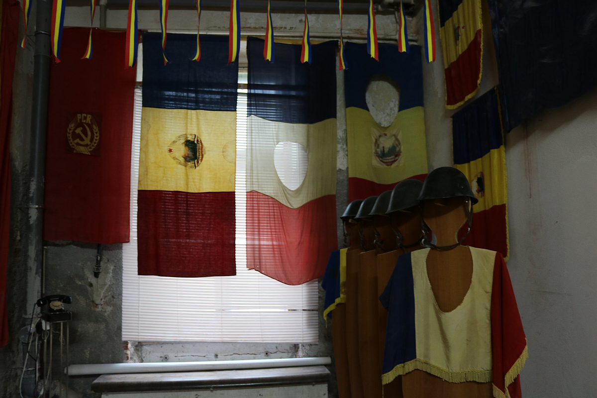 A temesvári forradalom múzeuma előtt némileg homályos metaforaként egy vasrudakkal körbevett vörös lapát áll, az egyik teremben pedig egy zászlókat felvonultató installációt állítottak össze a „keresd a hibát”-játék jegyében.