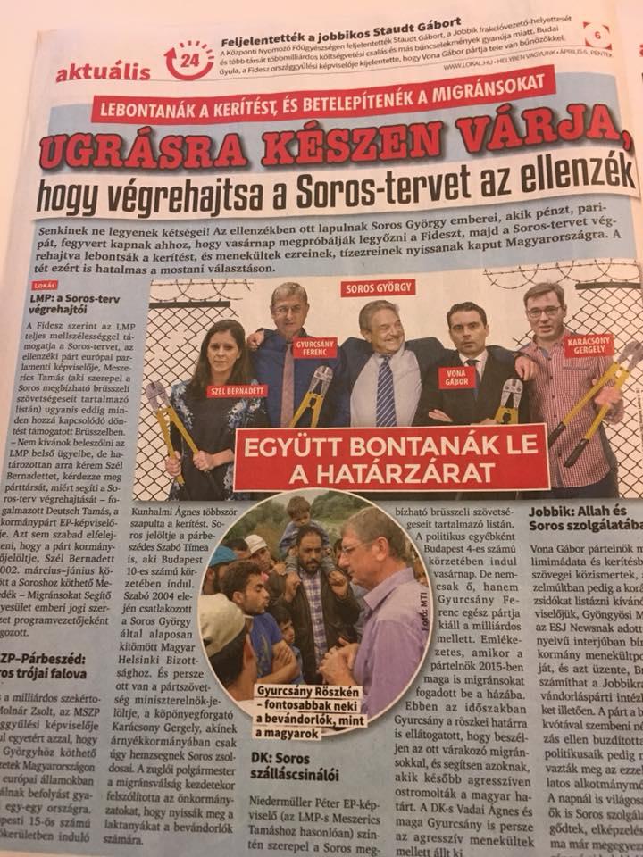 Soros György, gyilkos migránsok, urizáló jobbikosok, biztonságot hozó Fidesz. Minden fideszes topikot belepréseltek.