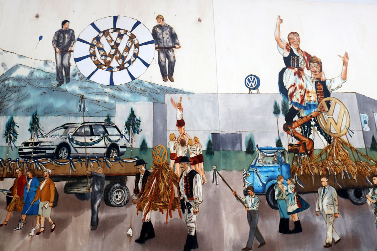 A Pozsony melletti Volkswagen-gyár Szlovákia egyik legnagyobb munkaadója, a szocialista dicsőítő propaganda stílusában megfestett kép pedig sokat elmond az EU vezető gazdasági erejét adó Németország és az unió összeszerelő műhelyeiként is funkcionáló kelet-közép-európai államok viszonyáról – legyen az akár Magyarország, akár Szlovákia.