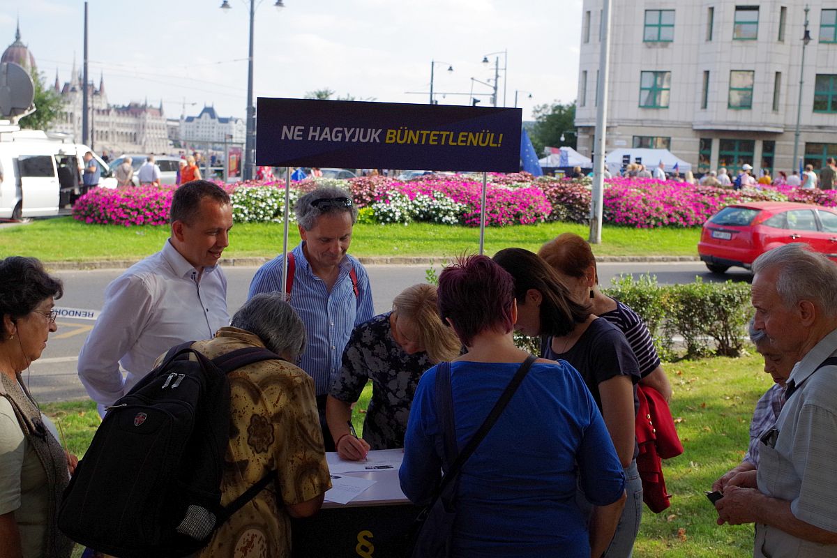 A tüntetésre standokkal csak az MSZP és az Európai Ügyészséget támogató Hadházy Ákos-féle petíciózók jöttek ki. Előbbiek kérdőíveket osztogattak, utóbbiak aláírásokat gyűjtöttek – elég nagy sikerrel.