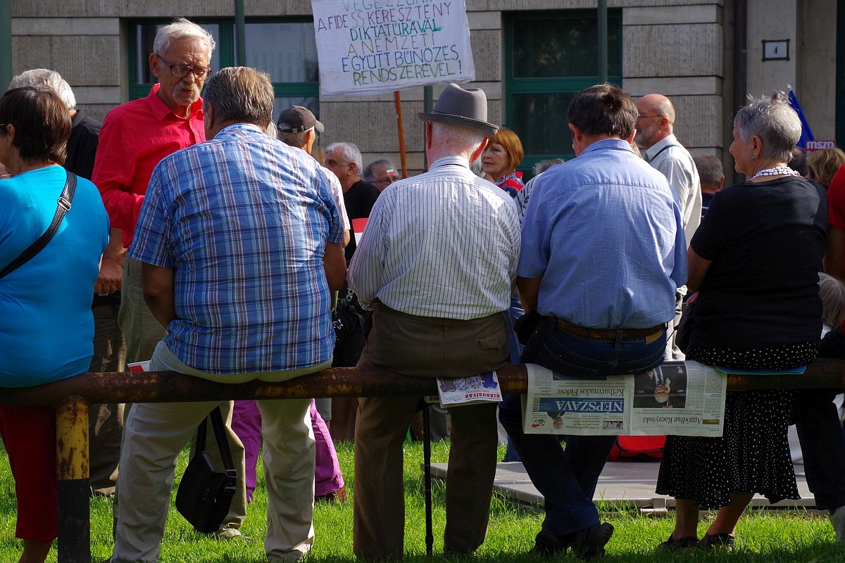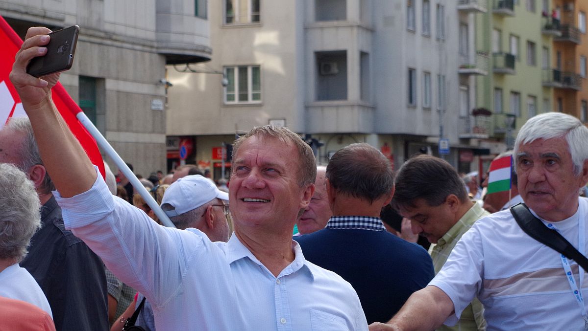 A közönség egyébként jórészt idősekből állt, főleg szocialista és DK-s zászlókat lehetett látni, meg a DK-s Varju Lászlót, aki rajongókkal fotózkodott.
