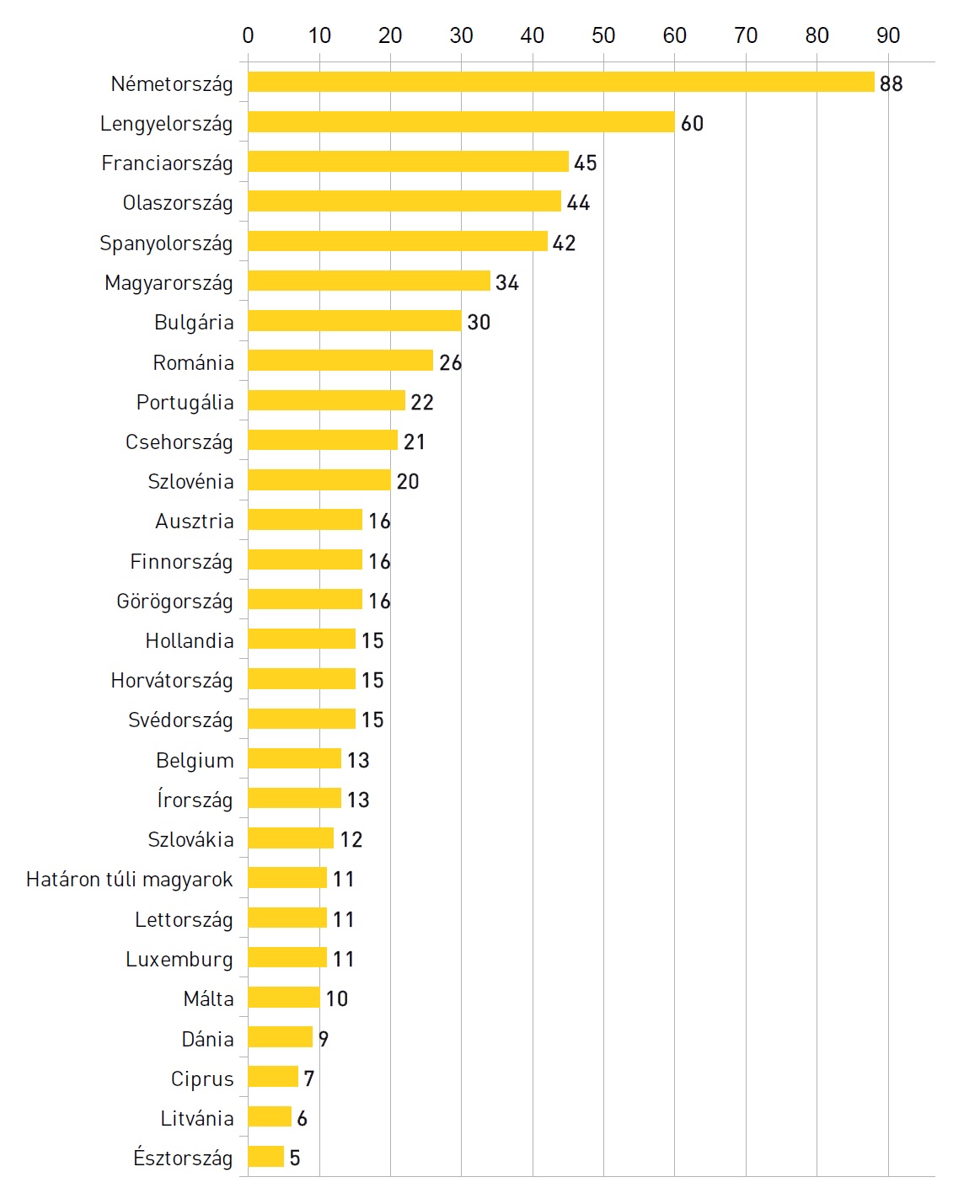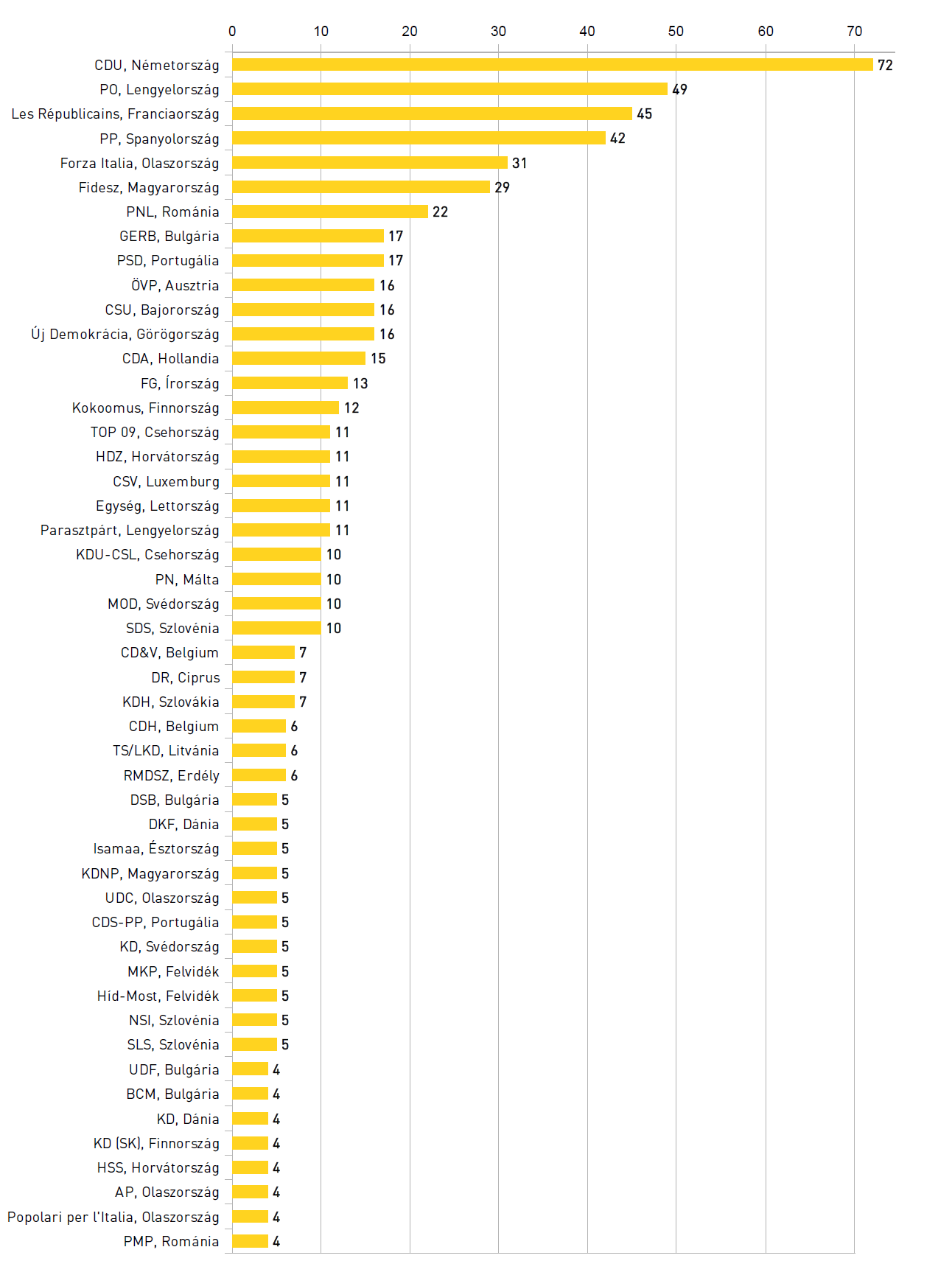 Látható, hogy vannak országok, ahol több párt is tagja az Európai Néppártnak, tehát nézzük meg országonkénti bontásban is ugyanezt!