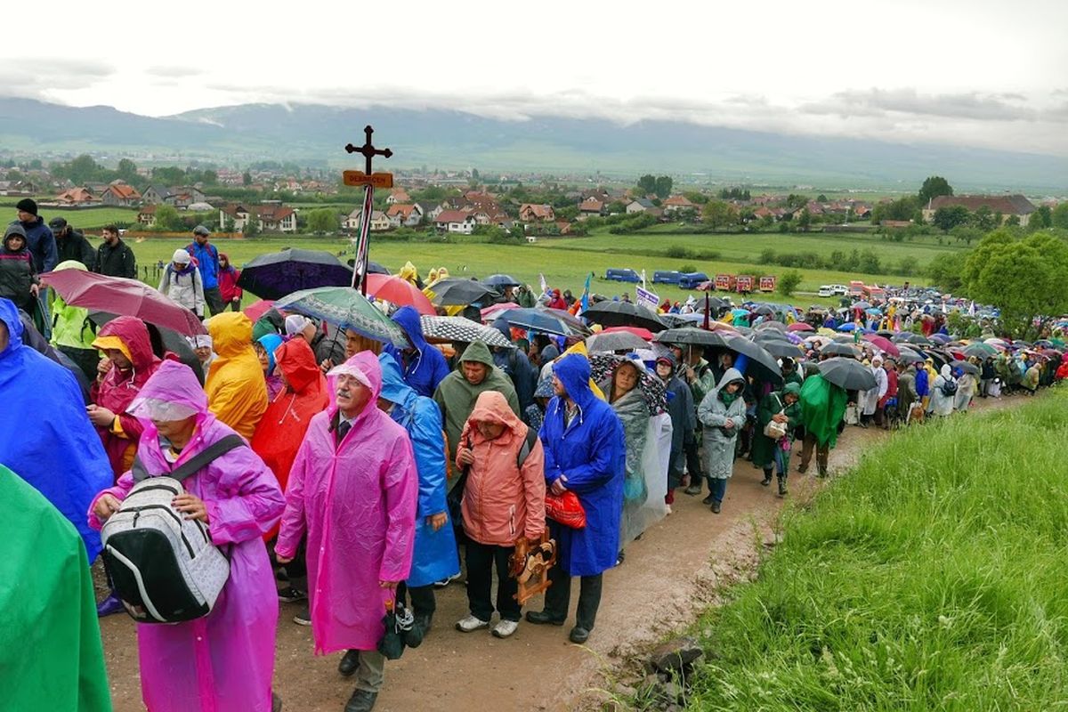 Hajnali hat van, csörög az óra. Pár órát sikerült aludni. Sokunk számára különbség van ma már itthon és otthon között, és az a különbség több száz kilométerben mérhető. De vándor székely hazatalál, akkor is, ha több mint tíz órát kell utaznia ezért, és éjjel háromra éri el csak a (székelyföldi) ágyát. Sebaj, segít a rutin, a kéz magától mozdul és ragadja magához a hátizsákot, az esernyő is kéznél van, elvégre búcsú lenne, és nincs csíksomlyói búcsú esernyő nélkül. Akkor sem, ha ragyogó napsütés van, márpedig most nem ragyog semmi, napok óta szakad az eső. Sárga riasztások, áradások és most is olyan egyenletes ütemben jön az áldás, mintha soha nem szándékozna ezt már abbahagyni.