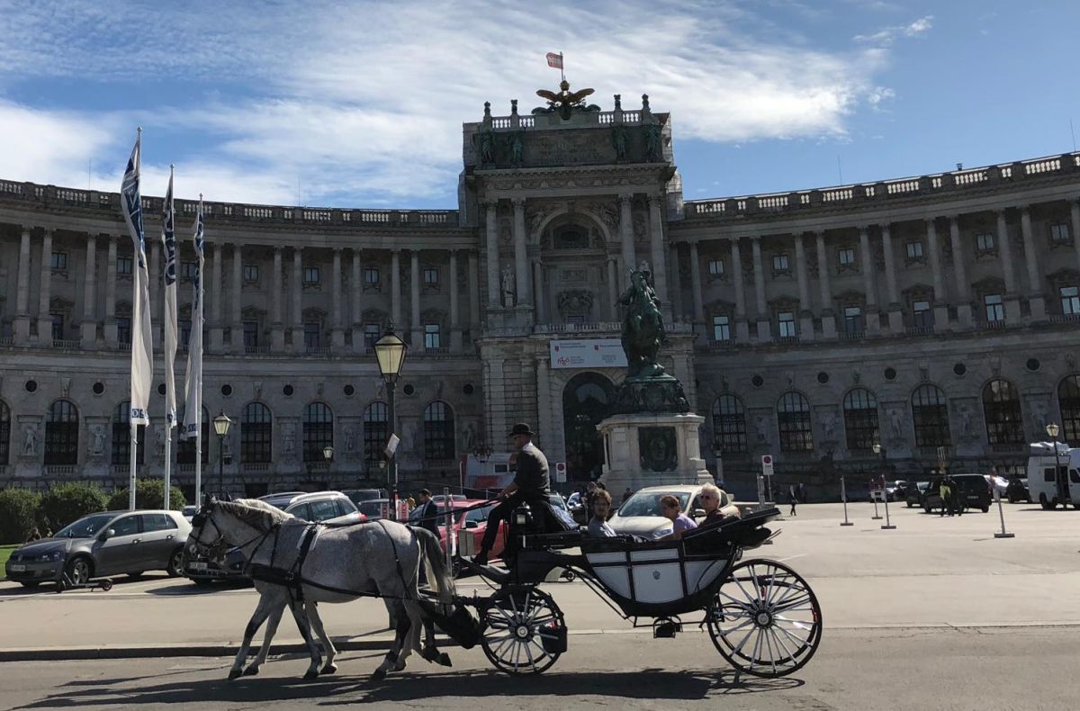 Vasárnap délelőtt csak gyalogos és fiákeres turistákat lehetett látni a környékén, bár egy-két nyitott ablak az emeleten jelezte, hogy valakik ma is dolgoztak benn – egyelőre még Brigitte Bierlein szakértői kormányának.