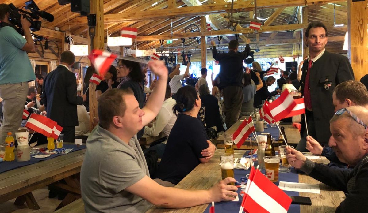 Az FPÖ a bécsi vidámparkban, vagyis a Praterben tartja a választási buliját, ahol semmi nem érződik a katasztrofális, csupán 16 százalékos választási eredményből. Alkoholból akad bőven, a hangulat kiváló még annak ellenére is, hogy a körülbelül 800 fő befogadóképességű teremnek a fele-harmada telt csak meg, de aki ott van, az nagyon lelkes. A megjelenteknek Dominik Nepp, a bécsi FPÖ elnöke tartott is egy beszédet – és nyilatkozott az Azonnalinak is –, melyben kifejtette, nincs semmi baj a mostani eredménnyel, hiszen ezt egy átmeneti állapotnak tekintik, és a 2020-as bécsi tartományi választásra újra 20 százalék fölé küzdenék magukat. Ezt a kijelentést óriási üdvrivalgás kísérte.