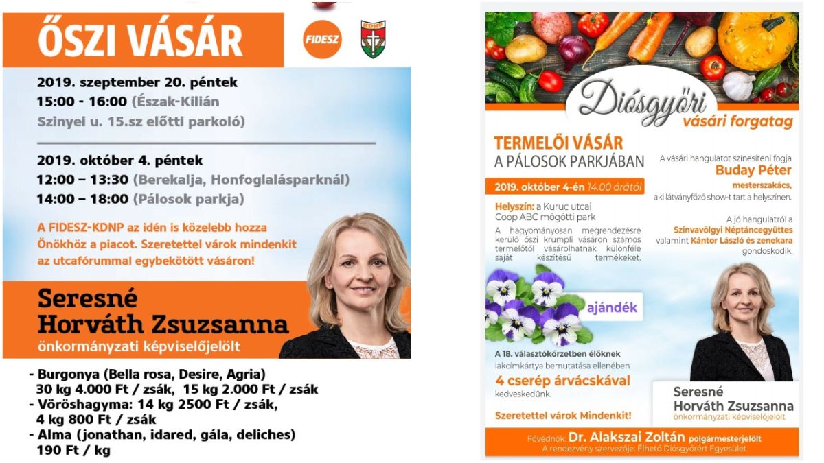A miskolci Fidesz egyébként nemcsak az ingyen sör-virsli kombinációt vetette be a kampányban. Az egyik önkormányzati képviselőjelöltjük, Seresné Horváth Zsuzsanna utcafórummal egybekötött „őszi vásárt” tartott szeptemberben, amely során kedvezményesen lehetett zöldségeket venni: 15 kiló krumpli kétezer forint volt, 14 kiló vöröshagyma 2500, míg az alma kilóját 190 forintért adták, de ezeken felül kapható volt karfiol, káposzta, lencse, bab vagy mák is.