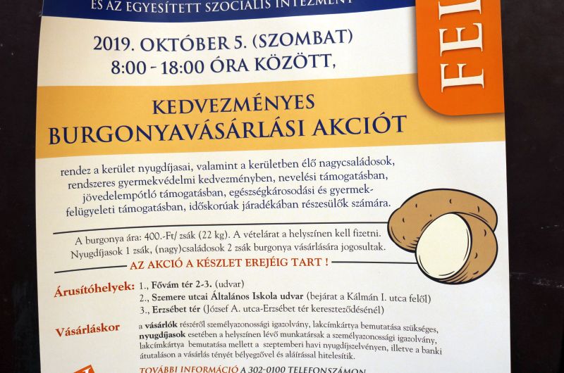 FRISSÍTÉS (19.12): Az önkormányzat sajtóosztálya péntek este azt válaszolta, hogy kampányidőszaktól függetlenül minden évben tartanak kedvezményes krumplivásárt, amit plusz szociális juttatásként nyújtanak, ezért a vásárlóknak igazolniuk is kell a jogosultságot.