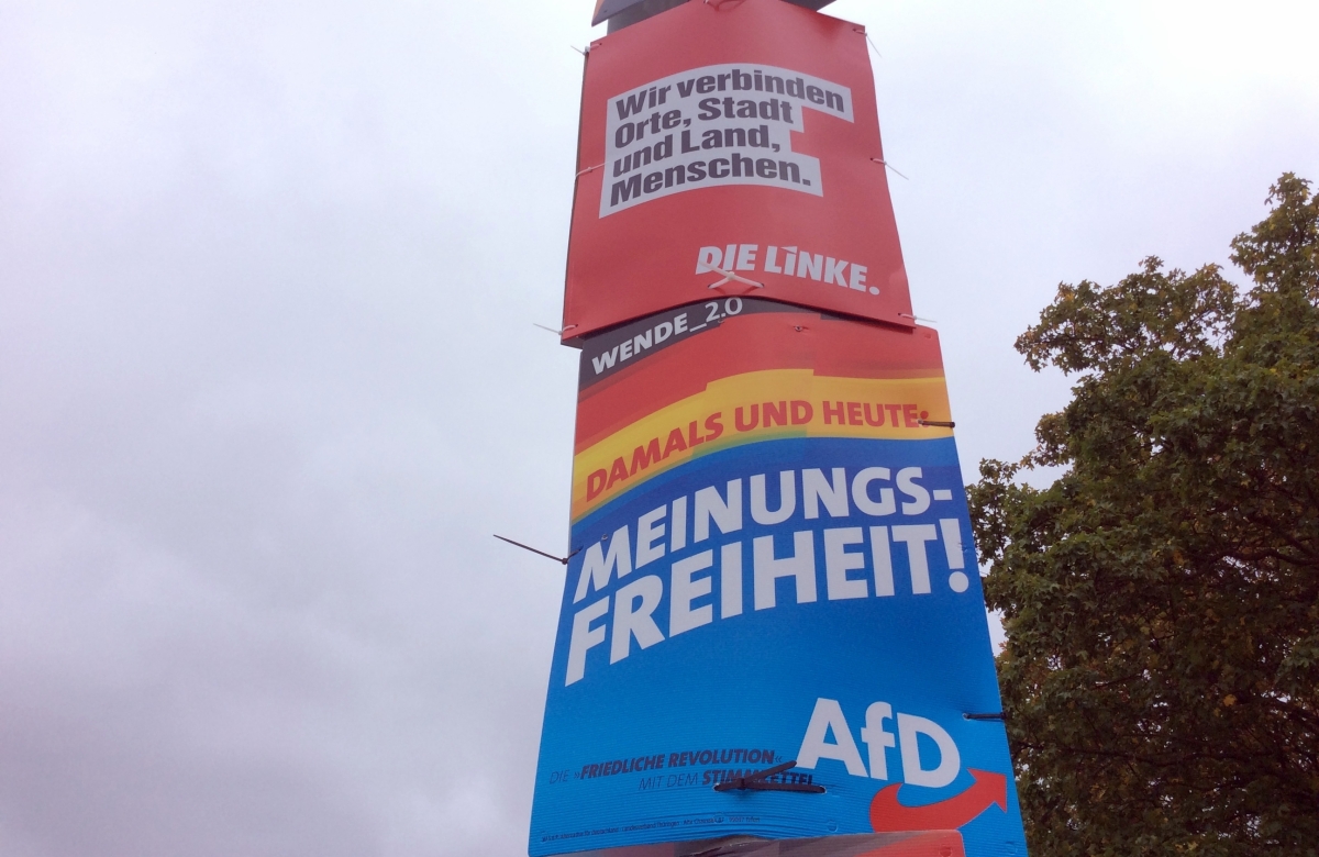 A BÉKÉS FORRADALOM A SZAVAZÓCÉDULÁVAL, HANGZIK AZ AFD SZLOGENJE AZ IDEI ŐSZI TARTOMÁNYI VÁLASZTÁSOKON. VÉGÜL SEM SZÁSZORSZÁGBAN, SEM BRANDENBURGBAN NEM FUTOTTAK BE AZ ELSŐ HELYRE, ÉS EZ TÜRINGIÁBAN SE JÖN NEKIK ÖSSZE A KÖZVÉLEMÉNY-KUTATÁSOK SZERINT: AZ ELSŐ A RAMELOW-FÉLE LINKE 28-CAL, MAJD A SZÖVETSÉGI CDU-NÁL KONZERVATÍVABB HELYI CDU JÖN 26 SZÁZALÉKKAL, AZ AFD-T 21 SZÁZALÉKRA MÉRIK.