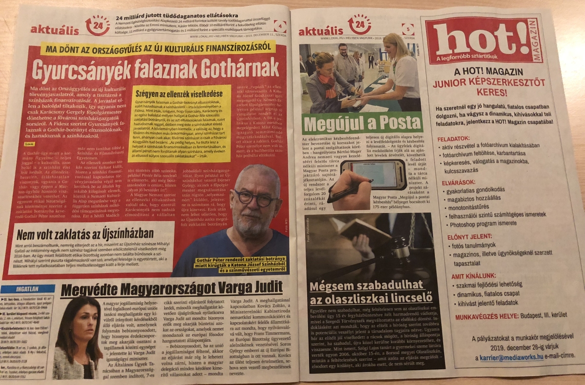 A Lokál meg Lokál, amit igazából olyan, mint egy Rossmann-katalógus kormányüzenetekkel. Talán azt is meg merem kockáztatni, hogy a Lokál az ott dolgozókon kívül a világon senkinek nem fog hiányozni, ha viszont a Pesti Hírlap kihúzza értelmezhető ideig, akkor azért lesz majd pár ember, akik keresik hazafelé az aznapi számot.