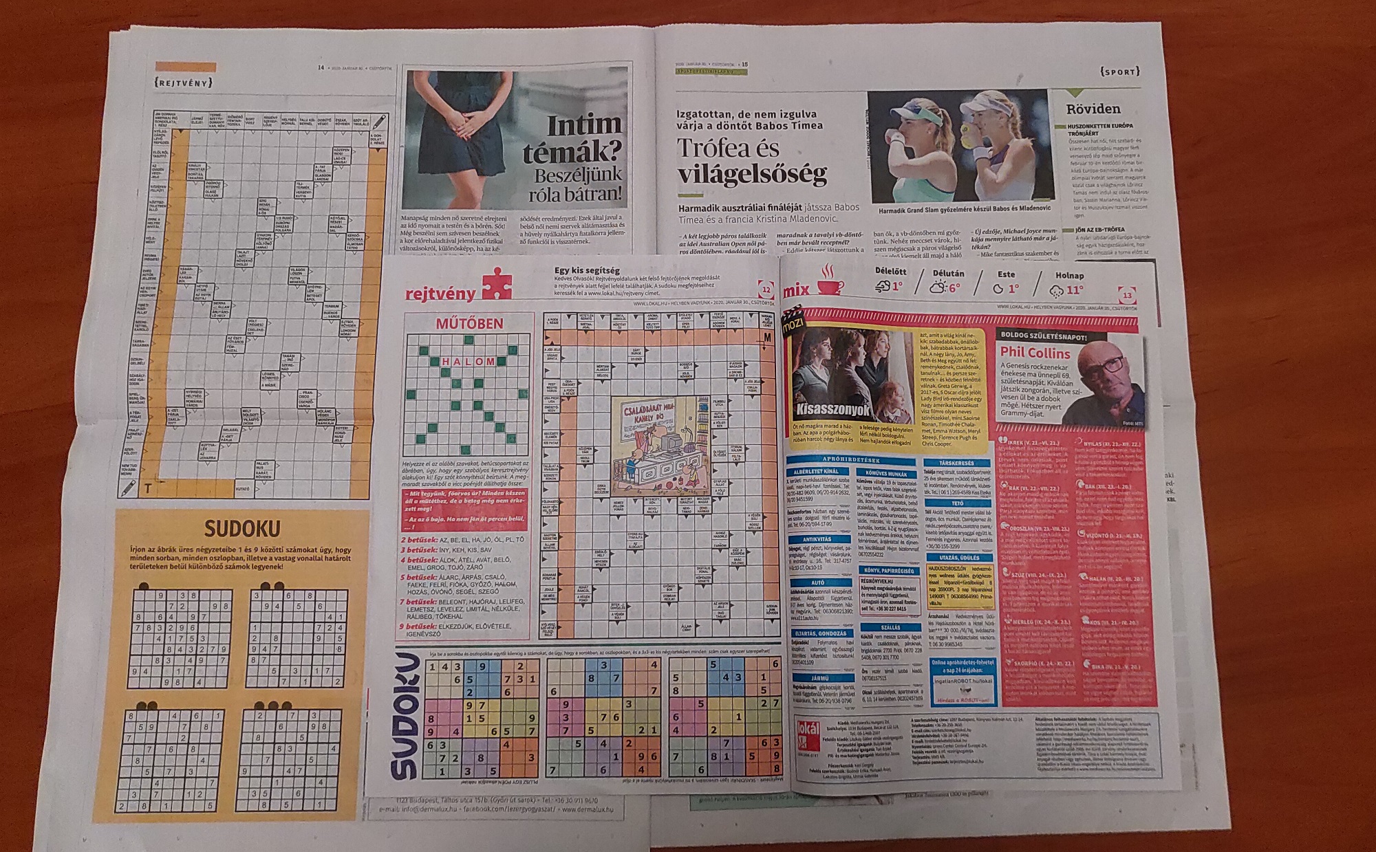 Ha az az ember vagy, aki csak a rejtvények miatt vesz el egy napilapot, akkor a Lokál a nyertes ebben a kategóriában, hiszen a keresztrejtvényen és a sudokun felül még egy harmadik rejtvény is jutott bele, a Pesti Hírlapba csak az előbbi kettő került bele. Ráadásul egy Lokál-címlap már önmagában felhőtlen szórakozás,