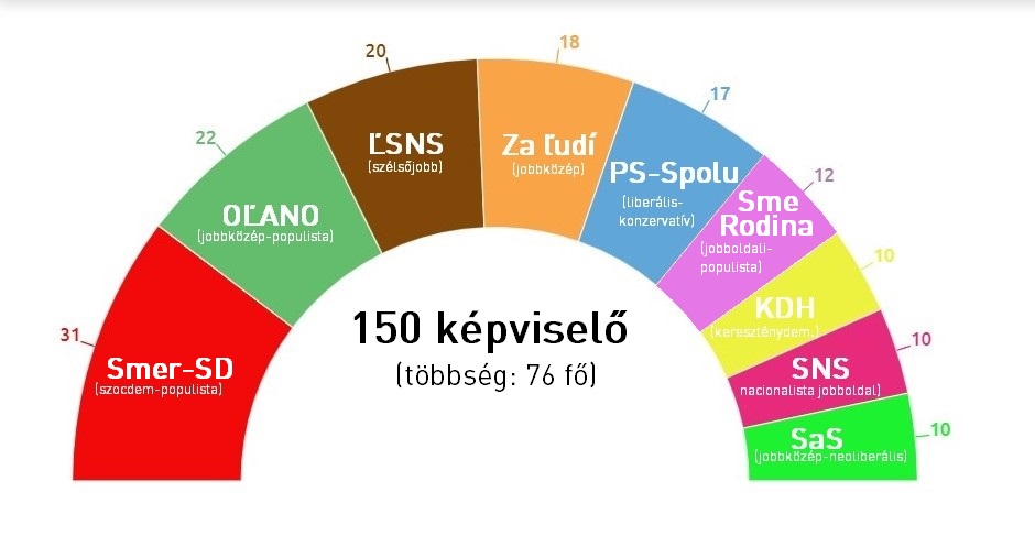 A pártvezetőt az ellenzéki pártok túlságosan akkor sem tudnák megkerülni, ha nagyon akarnák. Három párt van, akikkel nem valószínű, hogy a jobbközép koalícióra lépne: egyrészt, ott van a nagyobbik kormánypárt Fico-féle Smer, mely 17-20 százalékkal valószínűleg a legtöbb szavazatot szerzi majd, de többsége nem lesz. Másrészt, az Andrej Danko-féle (aki lebuzeránsozta Matovicot, és akinek hosszabb a rúdja a parlament előtt, mint Kövér Lászlóé) SNS 5 százalék körül, de ők lehet, hogy ki is esnek. Harmadrészt pedig a 11-12 százalékra mért, Kotleba-féle szélsőjobbos ĽSNS. Ez parlamenti mandátumokra levetítve azt jelenti, hogy