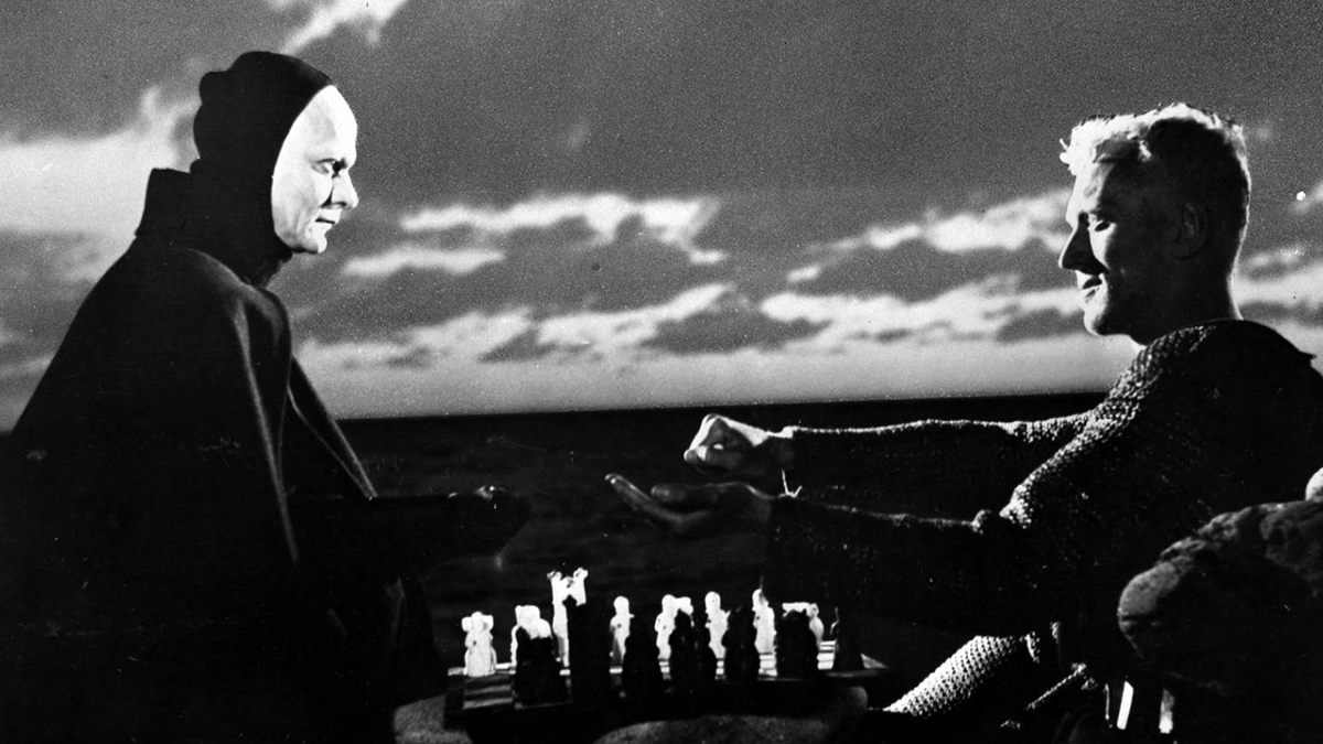 Ingmar Bergman kultikus filmjében egy keresztes lovag, Antonius Block tíz év után visszatér szülőhazájába, Svédországba, ahol a pestis kipusztította a lakosság jelentős részét. Rögtön találkozik is a Halállal és sakkjátszmára hívja, remélve, hogy a játék ideje alatt még életben maradhat. A film szomorú aktualitását adja, hogy a lovagot alakító Max von Sydow számára vasárnap véget ért a sakkjátszma, 90 éves korában elhunyt.
