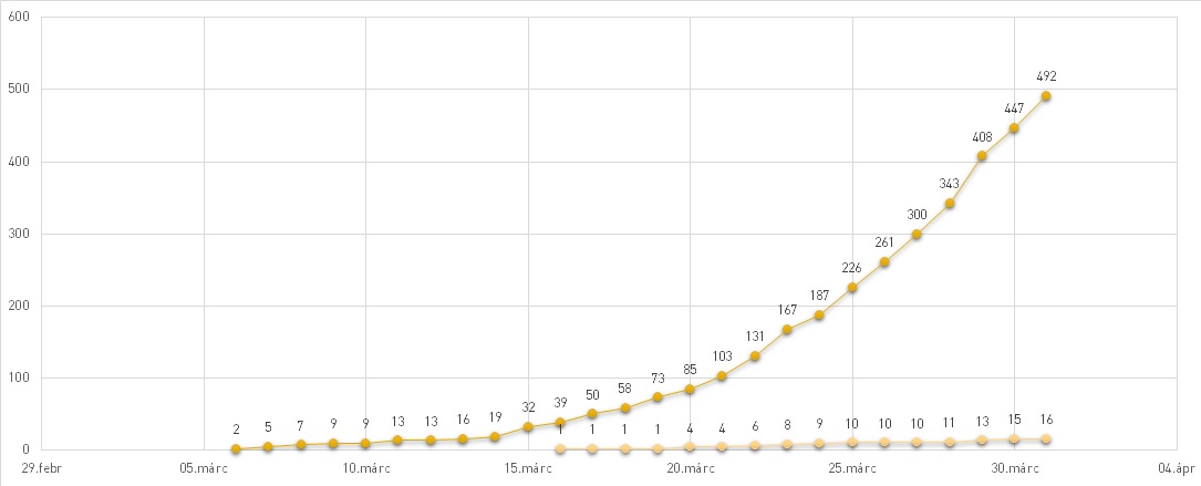 447-ről 492-re nőtt a koronavírus igazolt magyarországi fertőzöttjeinek száma a koronavirus.gov.hu kormányzati portál adatai alapján.
