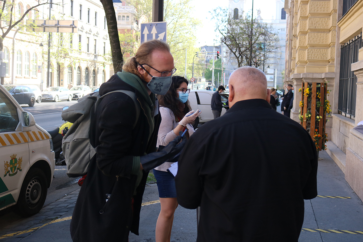 A többi kerületből már ismert feladatokon túl az önkormányzati ügyintézésben is segítenek az önkéntesek, mi például pont akkor találkoztunk velük, amikor a segélykérelmeket adták le a kerület lakói, és hogy a fertőzés kockázatát csökkentsék, a hivatal előtt, kültéren alakítottak ki egy sort, ahol az önkéntesek gyűjtötték össze a kérelmeket.