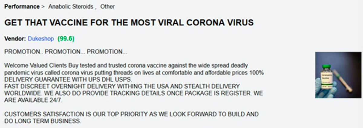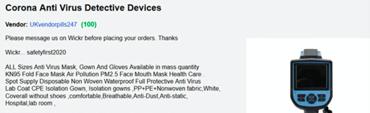 A koronavírushoz kapcsolódó termékek piacának nagysága ugyan messze eltörpül a dark web piacainak évi egymilliárd dollárra becsült forgalmához képest, de a koronavírussal kapcsolatos átverések már jóval nagyobb értékben zajlanak. Az amerikai Szövetségi Kereskedelmi Bizottsághoz április végéig huszonötezer, a vírushoz kapcsolódó panasz érkezett,