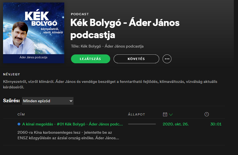A hivataltól az Áder által 2013-ban alapított Kék Bolygó Klímavédelmi Alapítványhoz irányítottak minket, mondván, a podcastot ez a szervezet üzemelteti. A Martonyi János volt külügyminiszter elnökölte, és Lázár János egykori miniszterhelyettese, Csepreghy Nándor igazgatta alapítvány honlapja szerint főbb tevékenységeik közé az innovatív környezet- és klímavédelmi megoldásokat alkalmazó mikro-, kis- és középvállalkozások segítése tartozik, illetve fenntarthatósággal foglakozó startupoknak is támogatást nyújtanak.