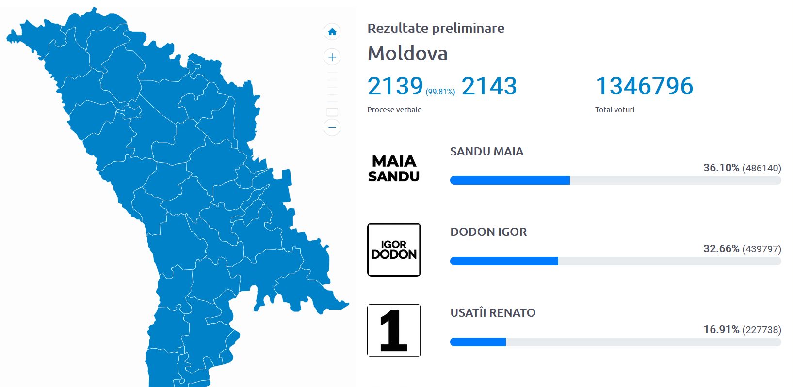 Sandu tehát sikeresen bejutott a második fordulóba, amelyre november 15-én kerül majd sor. Sandu ellenfele a jelenlegi moldáv államfő, a szocialisták pártelnöke, Igor Dodon lesz. Dodon jelenlegi államfő politikáját az oroszbarátság – mindig ott volt Putyin mellett a május 9-i, második világháború lezáró Győzelem Napi katonai felvonuláson a moszkvai Vörös téren – és Románia sorozatos bírálata jelentette. Belpolitikájában pedig a moldovai oligarchák között egyensúlyozó, hol az egyik támogatását élvező, hol egy másik ellenszenvét kivívó elnök volt.