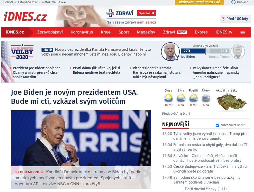 AZ ANDREJ BABIS CSEH KORMÁNYFŐ LAPJÁNAK MONDANI SZOKOTT MLADÁ FRONTA DNES ONLINE KIADÁSA AZ AMERIKAI SAJTÓRA HIVATKOZVA HOZZA KI GYŐZTESNEK BIDENT. MEGTISZTELNEK - IDÉZI AZ ÚJSÁG BIDEN VÁLASZTÓIHOZ INTÉZETT SZAVAIT.