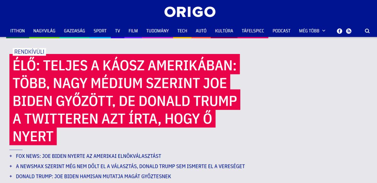 A 24.HU AZT IS BELEÍRTA A CÍMBE, HOGY TRUMP NEM ISMERI EL AZ EREDMÉNYT, ÉS NEM MARADHATOTT KI VAJNA TÍMEA REAKCIÓJA SEM.