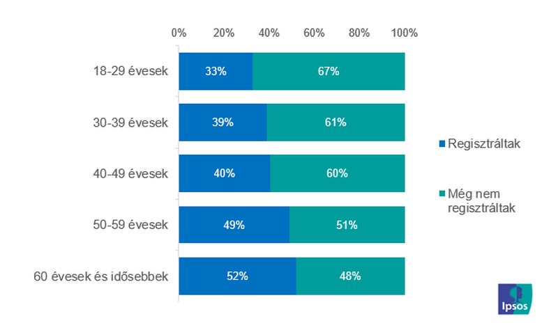 Az Ipsos felmérése szerint a magyar lakosság oltási hajlandósága 47 százalékos, de ennek a csoportnak kevesebb, mint a fele, 45 százalékuk regisztrált a kormányzati portálon a vakcinára.
