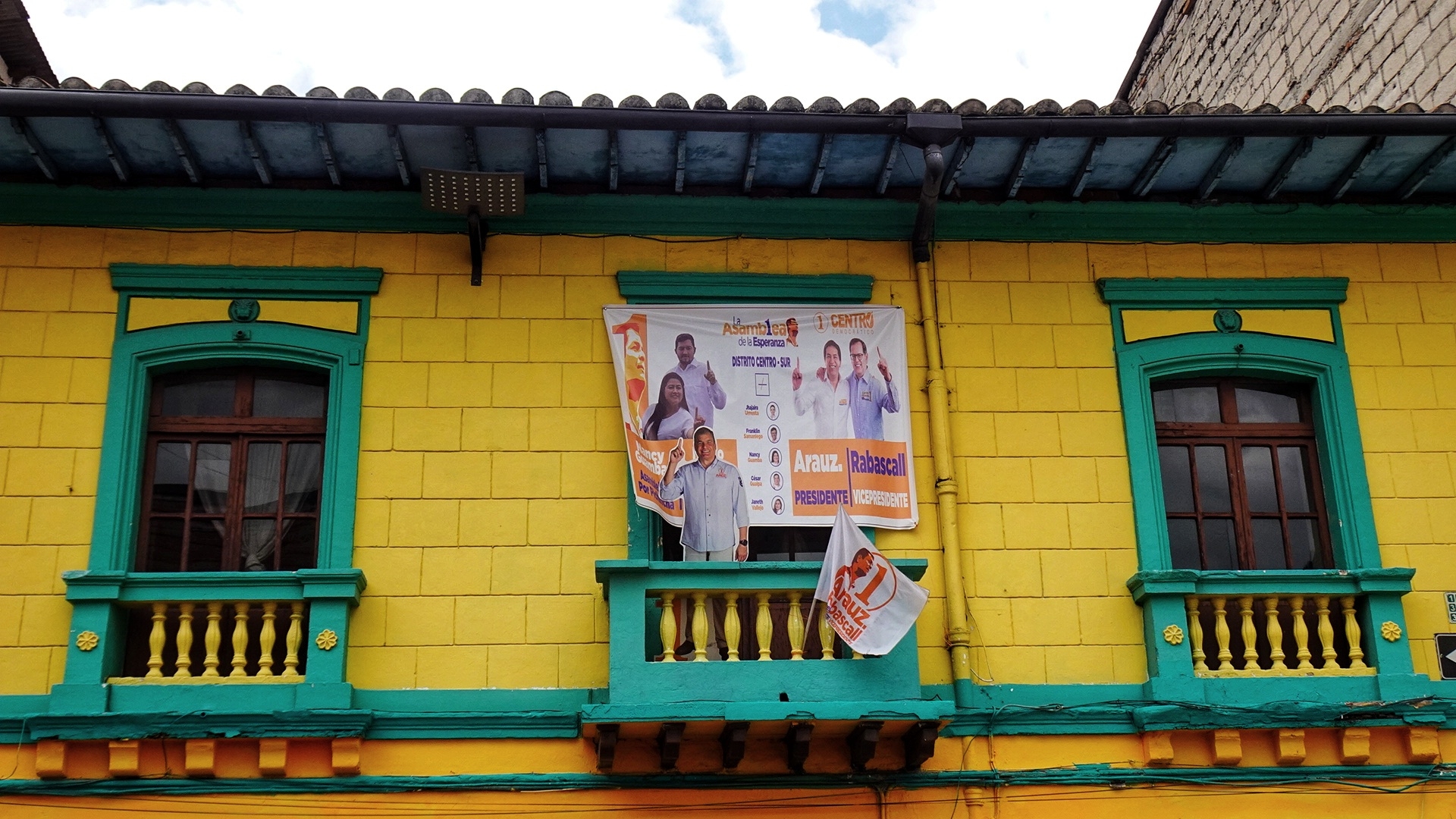 Szintén szinte mindenhol találkoztam, ha csak elvétve is Lasso plakátjaival. Olykor megrongálva, olykor firkákkal kiegészítve, miszerint Lasso = Moreno. Arauz-plakátokat, zászlókat ritkán láttam, viszont lelkes támogatóival több helyen is összefutottam, ifjúsági szervezetek vagy csak önkéntesek által szervezett rendezvényeken, ahol Arauz programját magyarázták, olykor internetes videók segítségével, akár kecsua nyelven is. Mivel a politika kényes téma, főleg egy idegennel, igy csak egy-egy esetben tettem fel ilyen kérdéseket, változó válaszokat kapva, az apátia és a téma elutasítása azonban életkortól, nemtől és iskolázottságtól függetlenül általánosnak mondható.