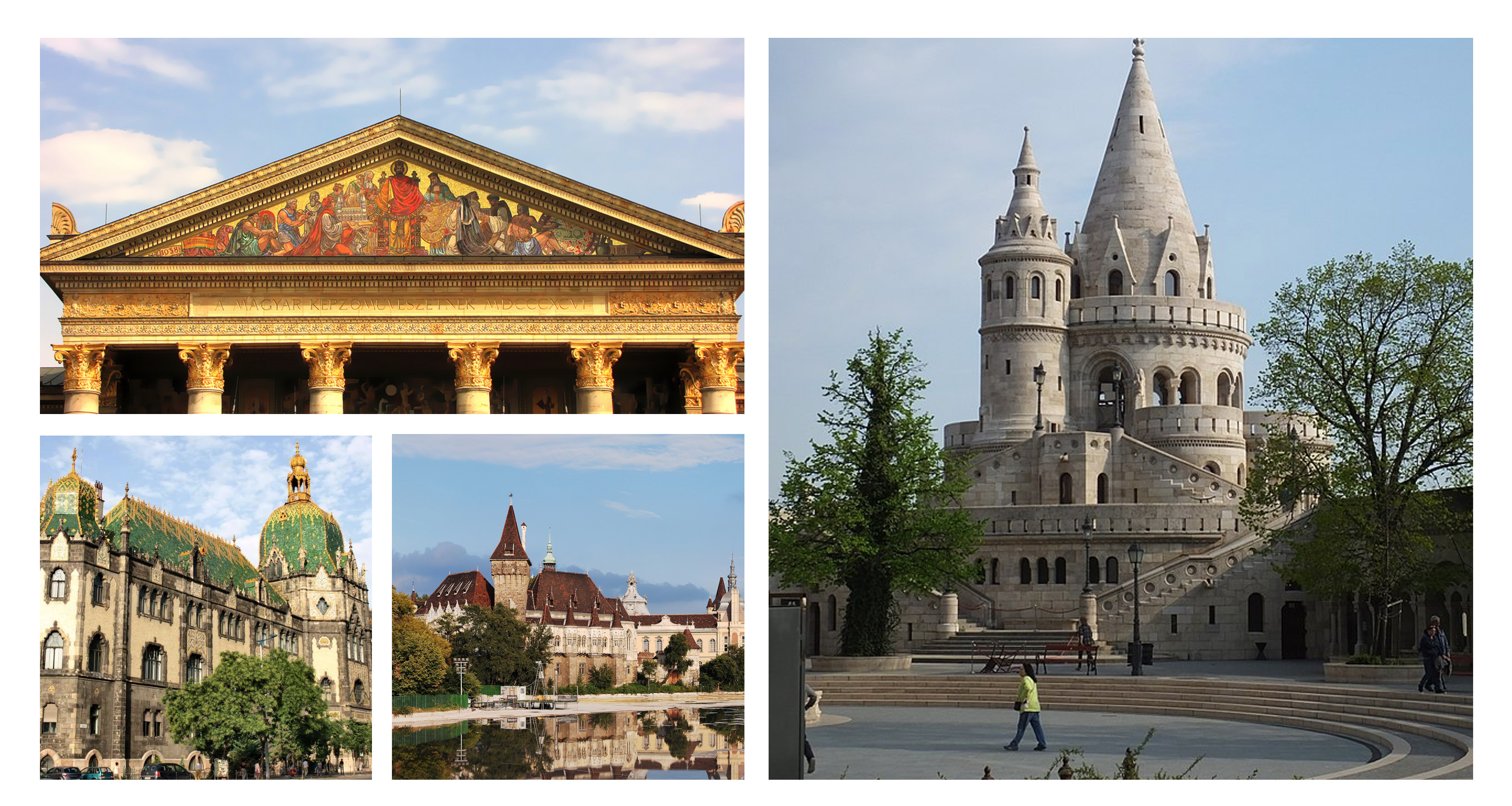 Elég, ha csak a Schulek Frigyes által felújított Halászbástyát és Mátyástemplomot, a Vígszínházat, a Lechner Ödön által tervezett Iparművészeti Múzeumot, vagy Feketeházy János munkáját, a Ferenc József hidat (ma Szabadság híd) említjük.