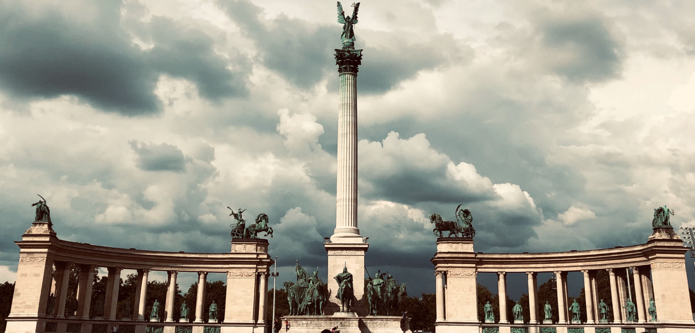 A teret övező oszlopcsarnok jó darabig üres volt. Zala György királyábrázolásai között Habsburg-házi uralkodók is helyet kaptak, melyeket a második világháború után cseréltek le a következőképpen: I. Ferdinándot Bocskai István, III. Károlyt Bethlen Gábor, II. Lipótot II. Rákóczi Ferenc, Mária Teréziát Thököly Imre, Ferenc Józsefet pedig Kossuth Lajos alakja váltotta fel.